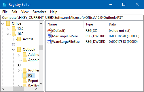 Note: Although the Registry path says “PST”, it also applies to ost-files.